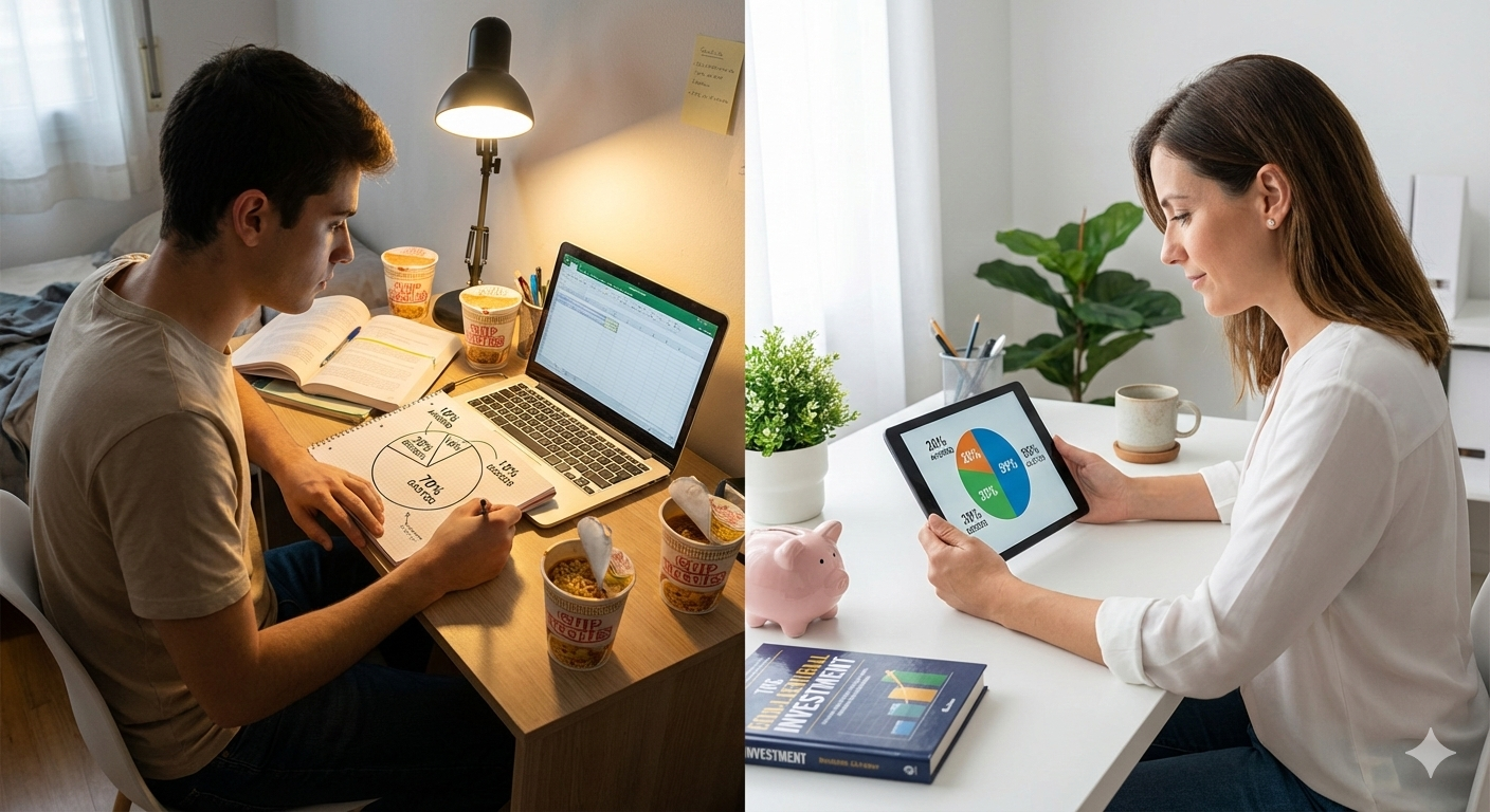 - 70% Gastos (Necesidades): Acepta que vivir en esta etapa es costoso. Cubre su techo y su comida sin culpa.